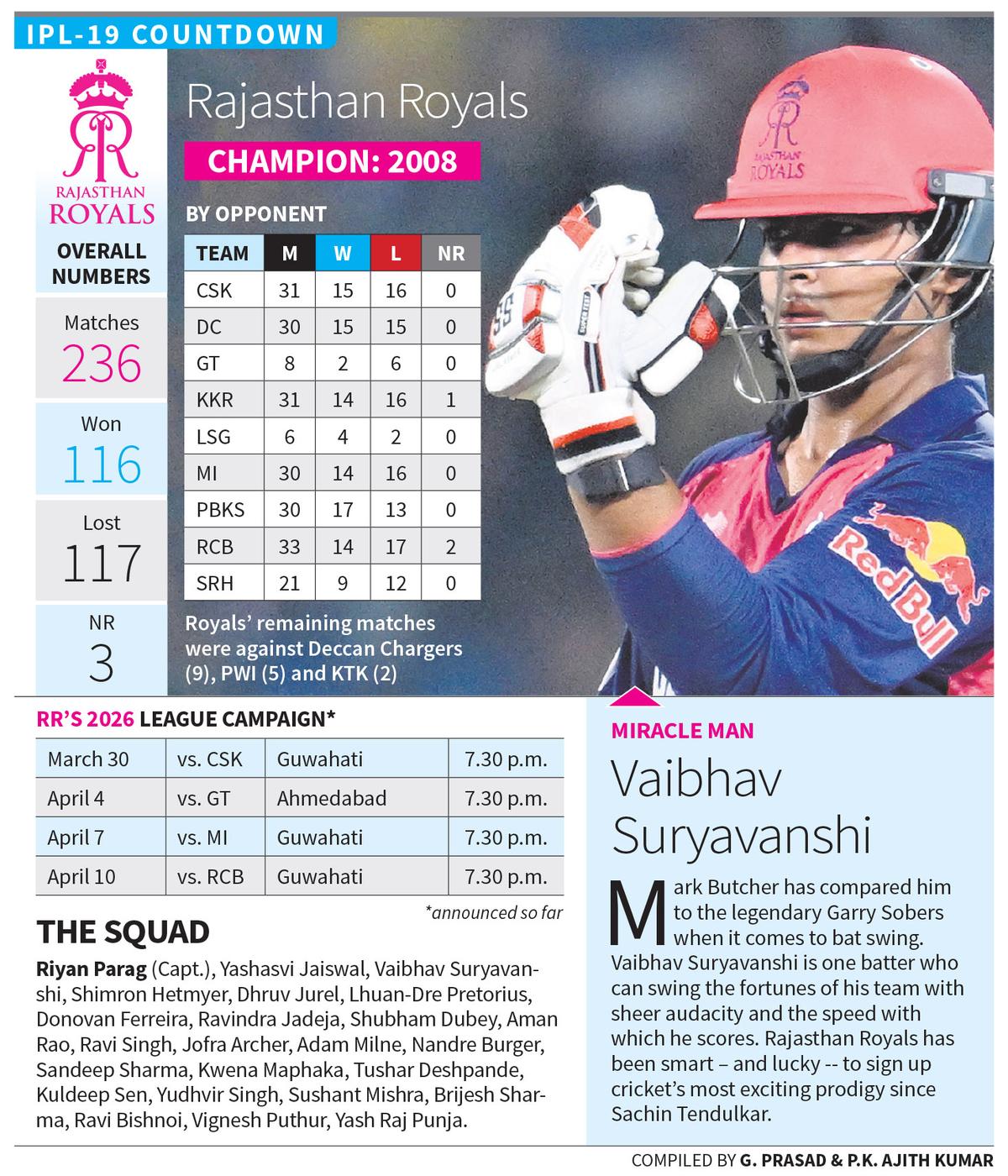 There is, of course, a lot more to the Royals batting unit than the dashing opening duo. Newly-appointed captain Riyan Parag, on whom Royals kept faith even when he was struggling for a few years, Dhruv Jurel, Shimron Hetmyer, the South African pair of Donovan Ferreira and Lhuan-dre Pretorius and Shubham Dubey offer plenty of firepower.